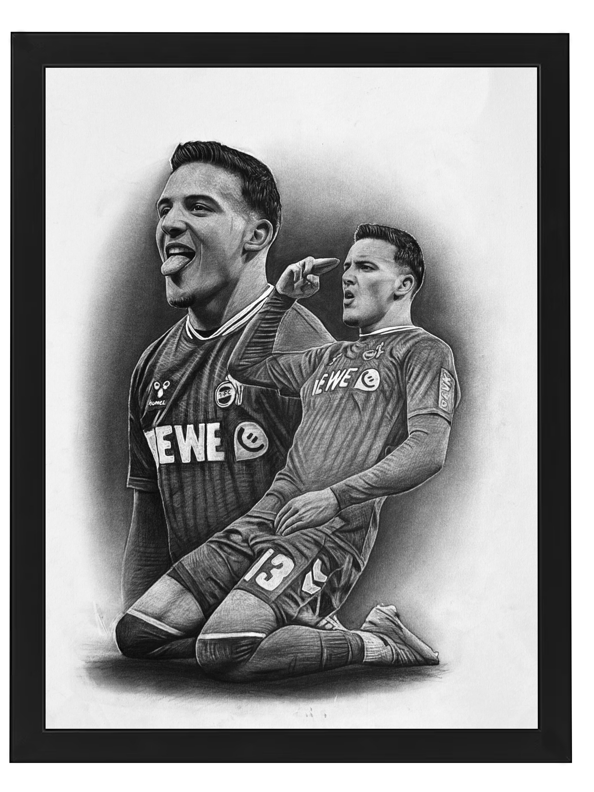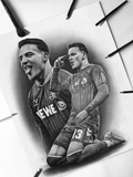 Zeichnung als Druck mit Spielerunterschrift auf hochwertigem Papier